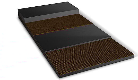 Two textile plies (polyester warp and polyamide weft)
